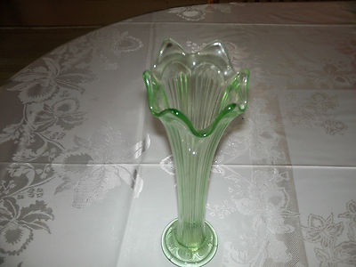 Title (ebay affiliate link): Green ruffle top depression glass Bud vase Collectable Vinatge