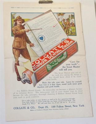Title (ebay affiliate link): 1912 COLGATE TOOTHPASTE 11 3/8 x 16 1/2 in. Ad BOY SCOUT MANUAL BSA DENTAL CREAM