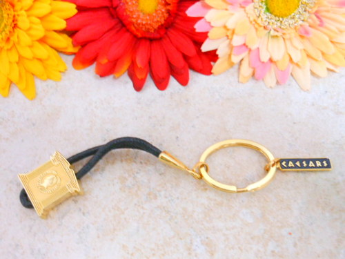 Title (ebay affiliate link): VINTAGE BLACK CORD GOLD TONE CAESARS KEYCHAIN F8330
