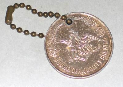 Title (ebay affiliate link): Vintage Budweiser Gold Tone Anodized Aluminum Token Coin Key Chain Ring