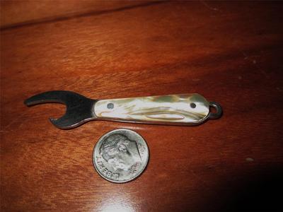 Title (ebay affiliate link): VINTAGE UNUSUAL KEYCHAIN SIZED BOTTLE OPENER WITH MOTHER OF PEARL HANDLES