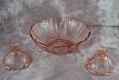 Title (ebay affiliate link): Pink Oyster & Pearl Dep Glass "Centerpiece Set" lg fruit bowl, candlesticks