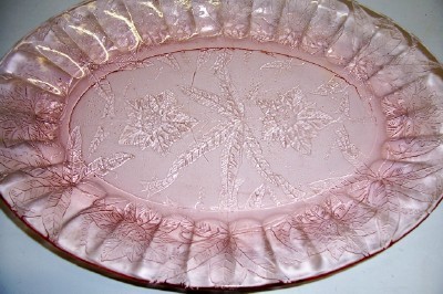 Title (ebay affiliate link): JEANNETTE FLORAL POINSETTIA OVAL VINTAGE PINK DEPRESSION GLASS PLATTER
