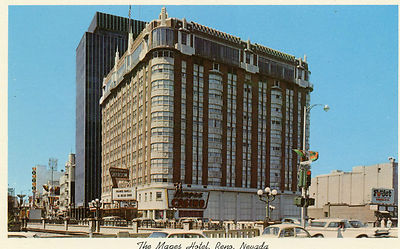Title (ebay affiliate link): Reno NV, 1950's postcard, Downtown, cars, Mapes Hotel Casino