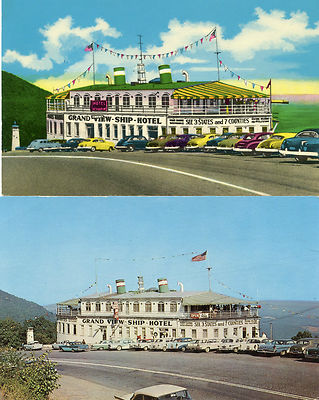 Title (ebay affiliate link): 2 Grand View-Ship Hotel PA postcards, 1940/50's cars, Lincoln Highway/US 30