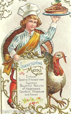Title (ebay affiliate link): THANKSGIVING EMBOSSED NASH SERIES 19~BOY WITH TURKEY & THANKSGIVING DAY MENU