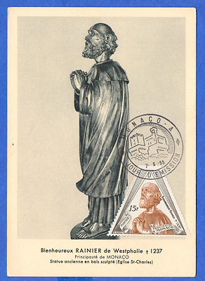 Monaco Bienheureux Rainier de Westphalie FDC Jour D'Emission Maxi Postcard 1955