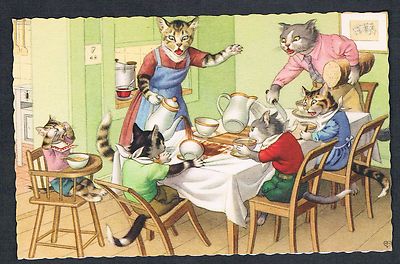 Title (ebay affiliate link): Alfred Mainzer Spilling Milk & Coffee Postcard Dressed Cats #4850 Belguim