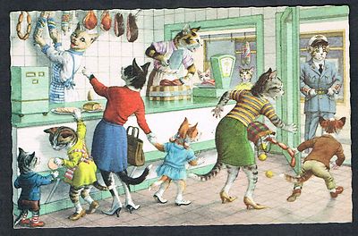 Title (ebay affiliate link): Alfred Mainzer At The Butcher Shop Postcard Dressed Cats #4978 Belguim