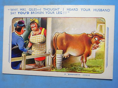 Title (ebay affiliate link): Bamforth Postcard 1960s Farming Cow Broken Leg - Mrs Giles Theme No 1996