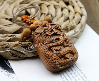 Title (ebay affiliate link): Chinese Peach wood carved statue Chinese dragon amulet key chain pendant W23