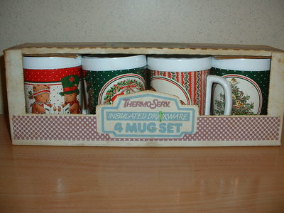 Title (ebay affiliate link): NEW Retro Thermo-Serv Set Of 4 - 10oz Insulated Coffee Tea Mugs-Christmas