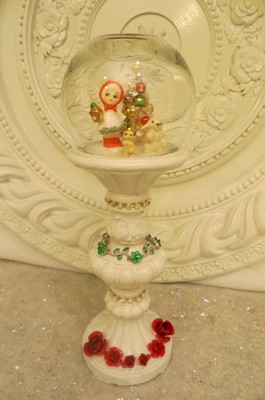 Title (ebay affiliate link): Vintage Napco girl with bottle brush tree dog cat on rhinestone candle holder