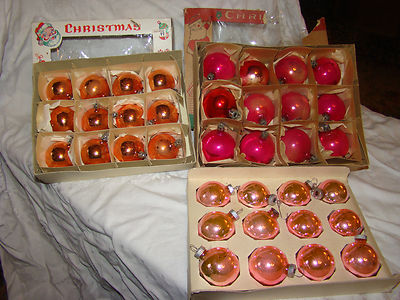 Title (ebay affiliate link): VINTAGE PINK CHRISTMAS TREE ORNAMENTS SHINY BRITE POLAND BLOWN GLASS BALL LOT 36