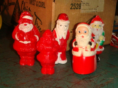 Title (ebay affiliate link): Vintage Lot Plastic Santas Hong Kong Irwin Fun World Santa Wheels Santa Rattle