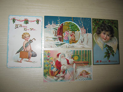 4 ANTIQUE Vintage 1900's Victorian CHRISTMAS POSTCARDs Xmas NEW YEARS dolls girl