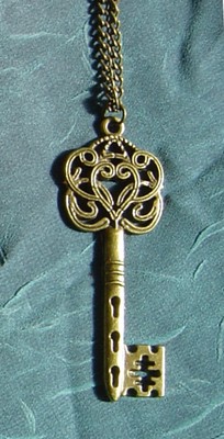 Title (ebay affiliate link): 1 rare gorgeous vtg bronze Skeleton Key Charm Pendant metal brass chain necklace