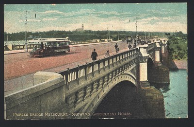 Title (ebay affiliate link): PRINCES BRIDGE, MELBOURNE - SHOWING GOVERNMENT HOUSE - c1907 - CABLE TRAM