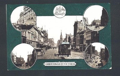 Title (ebay affiliate link): GREETINGS from VICTORIA - BOURKE SWANSTON COLLINS STs etc - c1911 - CABLE TRAM