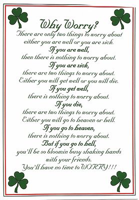 Title (ebay affiliate link): "Why Worry" Funny Irish Post Card Shamrock Ireland New P9