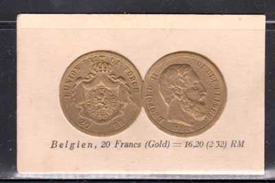 Title (ebay affiliate link): 1876 BELGIUM 20 FRANC GOLD COIN PICTURED ON EARLY TRADECARD, SCARCE