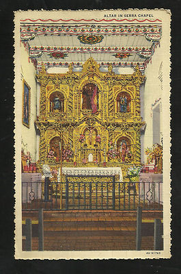 Title (ebay affiliate link): Mission San Juan Capistrano, Ca/ altar in Serra Chapel/ old linen postcard