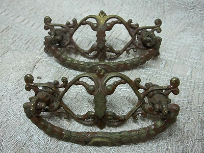 Title (ebay affiliate link): Set of 2 Antique Victorian Cast Brass Fancy DRAWER PULLS handles 3"