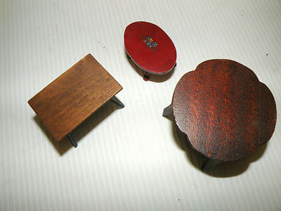 3pc LOT ANTIQUE VINTAGE MINIATURE Dollhouse Furniture COFFE END TABLE STOOL