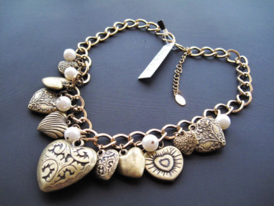 Title (ebay affiliate link): Guess Puff Heart Pearl Antique Goldtone Charm Necklace