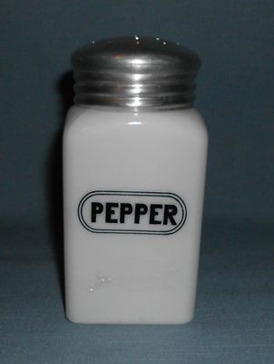 Title (ebay affiliate link): Vintage Milk Glass Hot Point Pepper Shaker Aluminum Cap Embossed