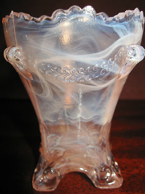 Title (ebay affiliate link): Pink & white milk slag glass swag pattern tabletop toothpick / match holder art