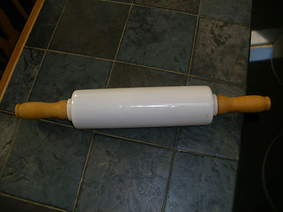 Vintage Wood Handled Milk Glass Rolling Pin - 18" - Nice