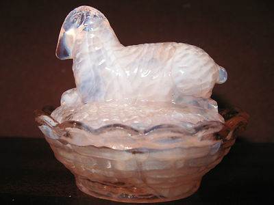 Title (ebay affiliate link): pink rose milk white slag glass Lamb Sheep / salt cellar celt on nest basket dip