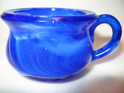 Title (ebay affiliate link): Cobalt blue & milk glass Chamber pot toothpick holder potty boyd match white mug