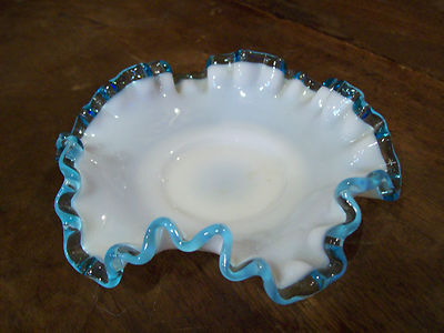 Title (ebay affiliate link): Vintage Mint 6" Fenton Blue Aqua Silver Crest Bowl Milk Glass Ruffled - Sweet!