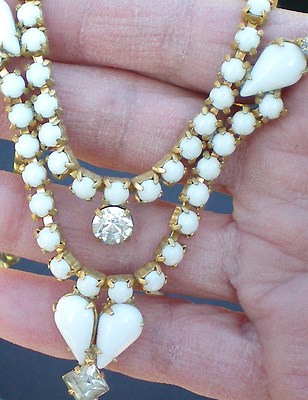 Title (ebay affiliate link): Vtg White Milkglass & Clear Rhinestone Festoon Necklace JULIANA GORGEOUS!!
