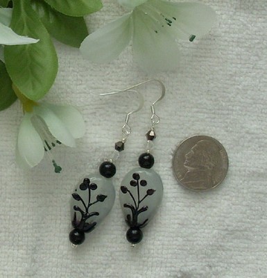 Title (ebay affiliate link): OOAK White Milk Black Floral Silhouette Blown Glass Crystal Earrings marie2art