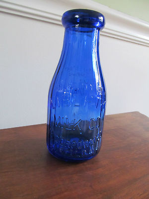 Title (ebay affiliate link): Vintage LIBERTY MILK CO (Buffalo NY) 7" Blue Cobalt Glass Milk Bottle