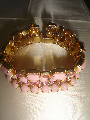 Title (ebay affiliate link): Vintage Gorgeous Juliana Pink Milk Glass & Rhinestone Bracelet W/Safety Clasp