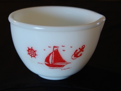Title (ebay affiliate link): RARE, Vintage McKee Red Ships Milk Glass Beater Bowl w/Spout