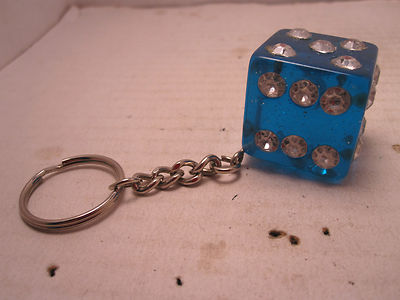 Title (ebay affiliate link): VINTAGE BIG BLUE LUCITE DICE DIE WITH RHINESTONES KEY CHAIN