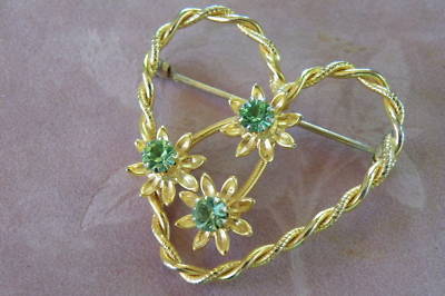 Title (ebay affiliate link): Antique Heart Shaped Pin with Green Rhinestone Accents