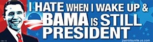**HATE WHEN I WAKE UP AND OBAMAS STILL PRESIDENT ** Anti Obama bumper sticker