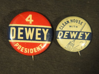 2 Vintage Campaign Sweep Clean House DEWEY for President PINBACK Lapel Buttons