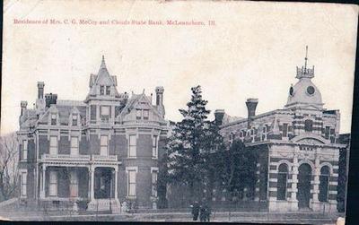 1912 Residence of Mrs. C. G. McCoy & Clouds State Bank McLeansboro, IL postcard