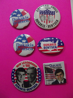 Title (ebay affiliate link): 6 1988 DUKAKIS-BENSTEN FOR PRESIDENT POLITICAIL PIN BACKS