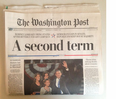 Title (ebay affiliate link): "Barack Obama Wins" Headline Washington Post 11-7-2012