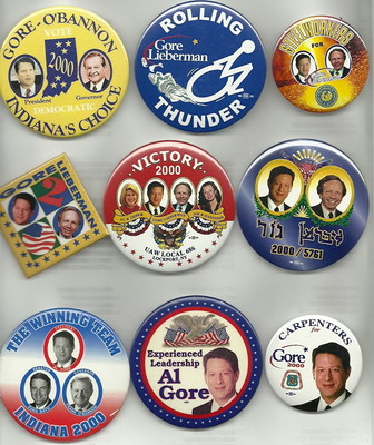 Title (ebay affiliate link): COLLECTION OF 9 DIFFERENT AL GORE FOR PRESIDENT PINS