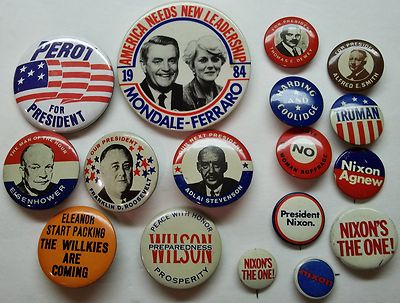 Title (ebay affiliate link): Lot of 17 Vintage Political Campaign Buttons/Badges/Pins - Some Reproduction