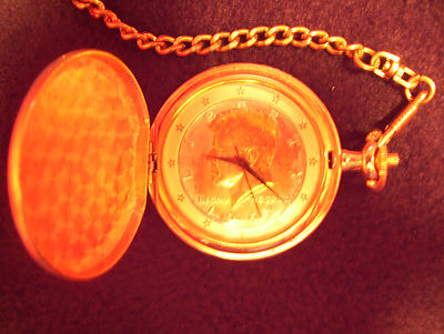 Title (ebay affiliate link): John F Kennedy 1968 Half-Dollar POCKET Watch with Chain